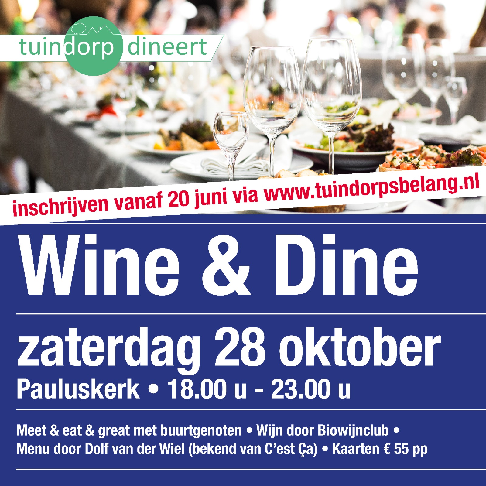 Op zaterdag 28 oktober is het weer Wine & Dine. Vanaf 18.00 uur organiseert Tuindorps Belang wederom een fantastische wijn en spijs avond in de sfeervolle Pauluskerk aan het Willem de Zwijgerplantsoen. De kerk wordt die avond omgetoverd in een gezellig pop-up restaurant.